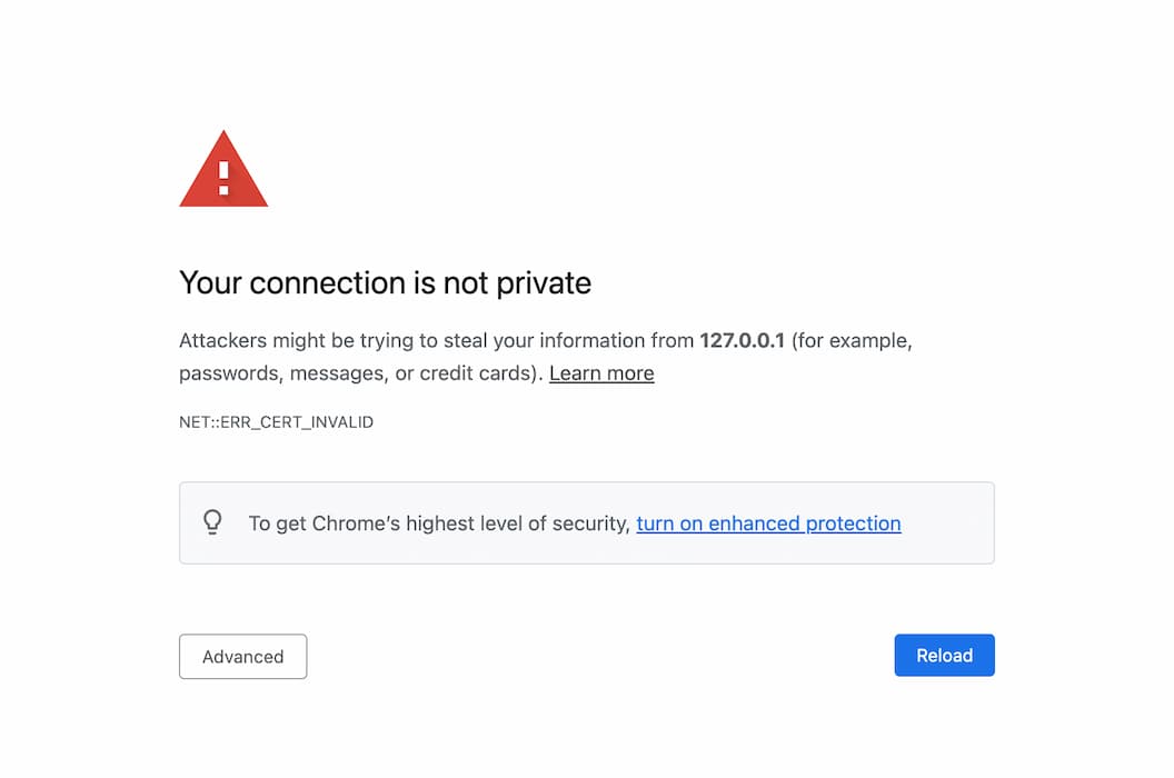 Because the certificate is self-signed, you will receive an error message in the browser.