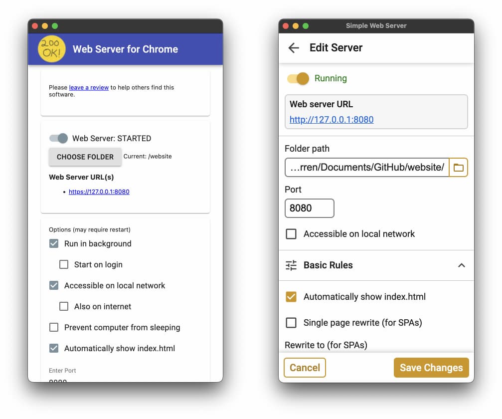 Simple Web Server has many new features and capabilities for users coming from Web Server for Chrome.